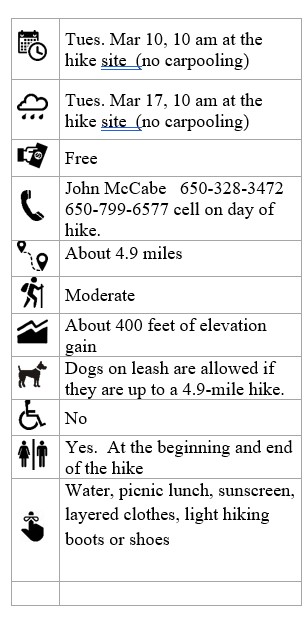 We have recently done some walks at the Pearson Arastradero Preserve; this will be a full hike. The trails that we will go on are nearly completely different. We will hike the rolling hills, valleys, and grasslands of this foothill ranchland. The hike will include oak- covered ridges and the Arastradero Lake.